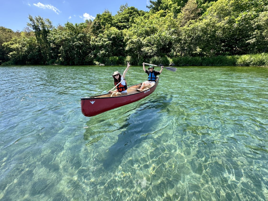 透明度抜群の湖水と四季折々に変わる景色をカナディアンカヌーから楽しめる♪特別で素敵な体験です。